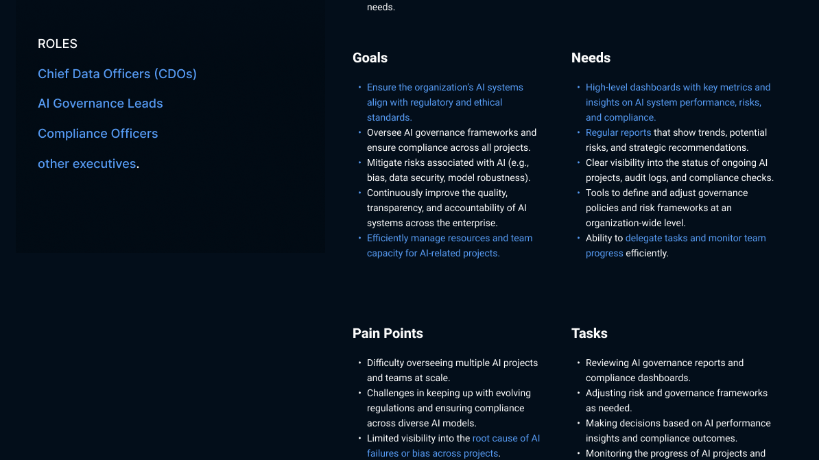 As the sole Product and UX/UI Designer at Holistic AI, a leading risk and compliance platform for responsible AI adoption, I led the design of three interconnected platforms: the AI Governance Platform, AI Tracker, and AI Safeguard. Each addressed a critical piece of the AI compliance puzzle: managing ethical standards, tracking global legislation, and ensuring safe LLM usage. Over two years, I helped shape a product ecosystem that not only kept pace with a rapidly evolving regulatory landscape but also empowered enterprise clients to navigate AI risk with clarity and confidence.